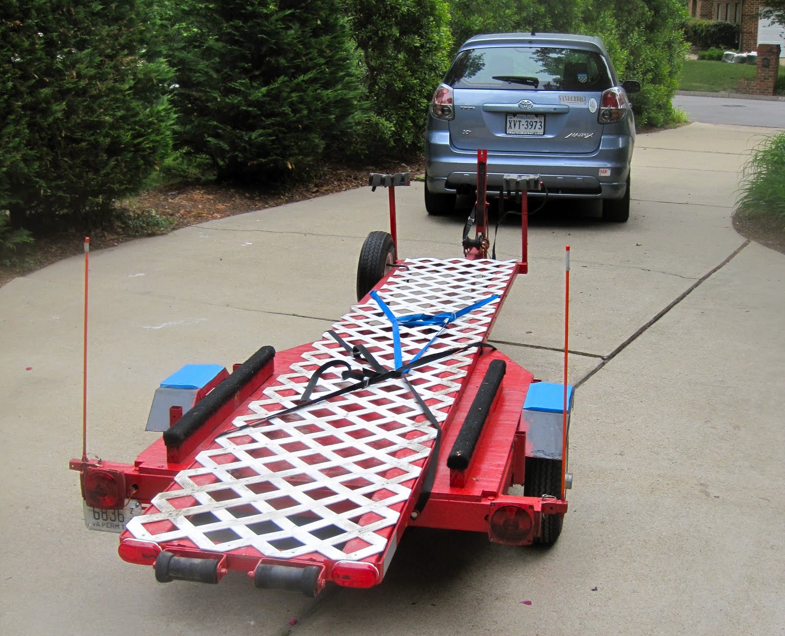 I have had some question about my Hobie Trailer. I bought the trailer several years ago at Harbour Freight to carry several conventional kayaks. Originally I decked over the frame, and added framework to carry three kayaks. When I bought the TI the boat was much longer so I had to move the forward post as far forward as it would go.